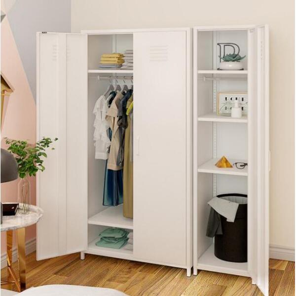 This wardrobe not only presents a perfect storage solution but also makes a unique decorative addition to your home with its cool, industrial style. The closet has 2 adjustable interior shelves that allow you to neatly sort your clothes into different categories for storing and organizing your socks, underclothes, etc. The wardrobe is equipped with 2 hanging bars and each door has a name cardholder and ventilation holes to add to its industrial gym locker look. This wardrobe is made of sheet metal, which makes it durable and easy to clean.